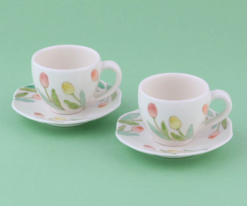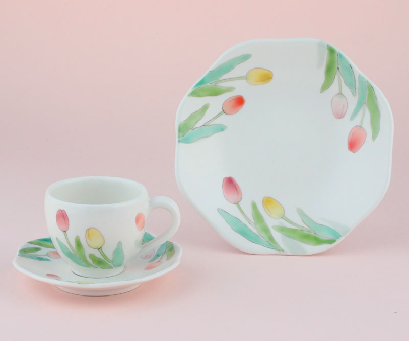 「色絵チューリップ菓子皿、カップ&ソーサー」2022年