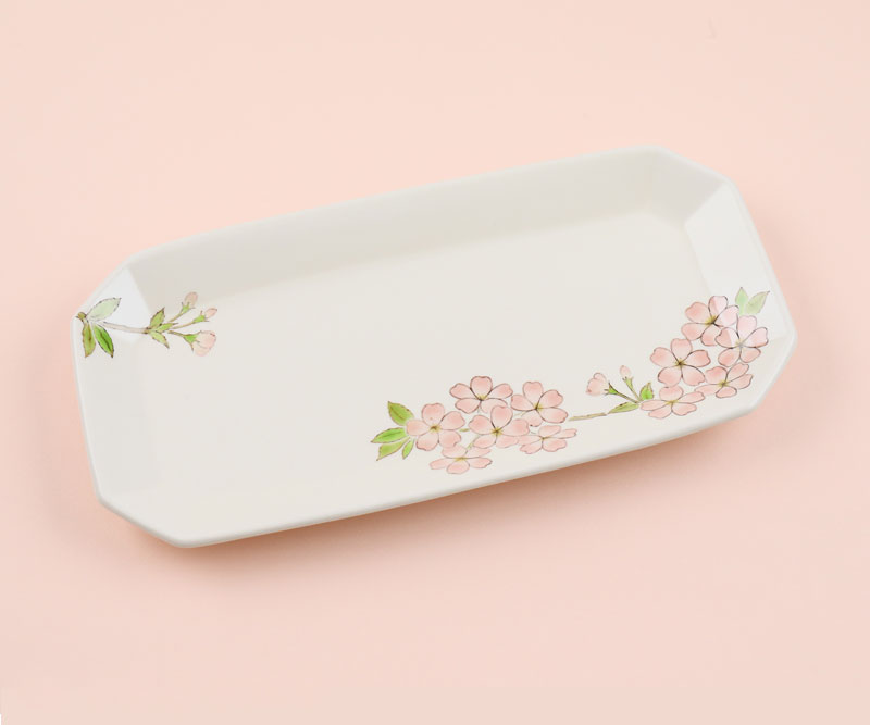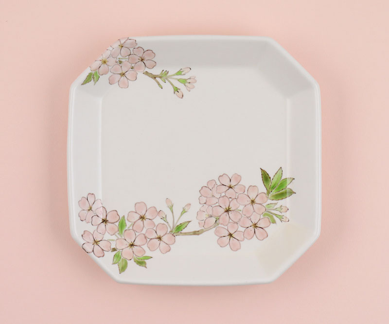 「色絵桜四角隅切皿」2023年