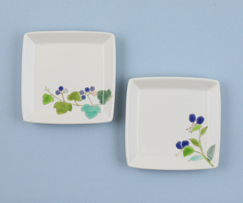 「色絵野葡萄四角隅切皿」2023年